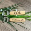 Add a personal touch to a practical favorite with this customized natural wooden bottle opener! Featuring a sturdy metal opener and a smooth wooden handle that can be personalized with names, dates, logos, or messages, it’s a functional keepsake that suits any occasion including wedding favors.