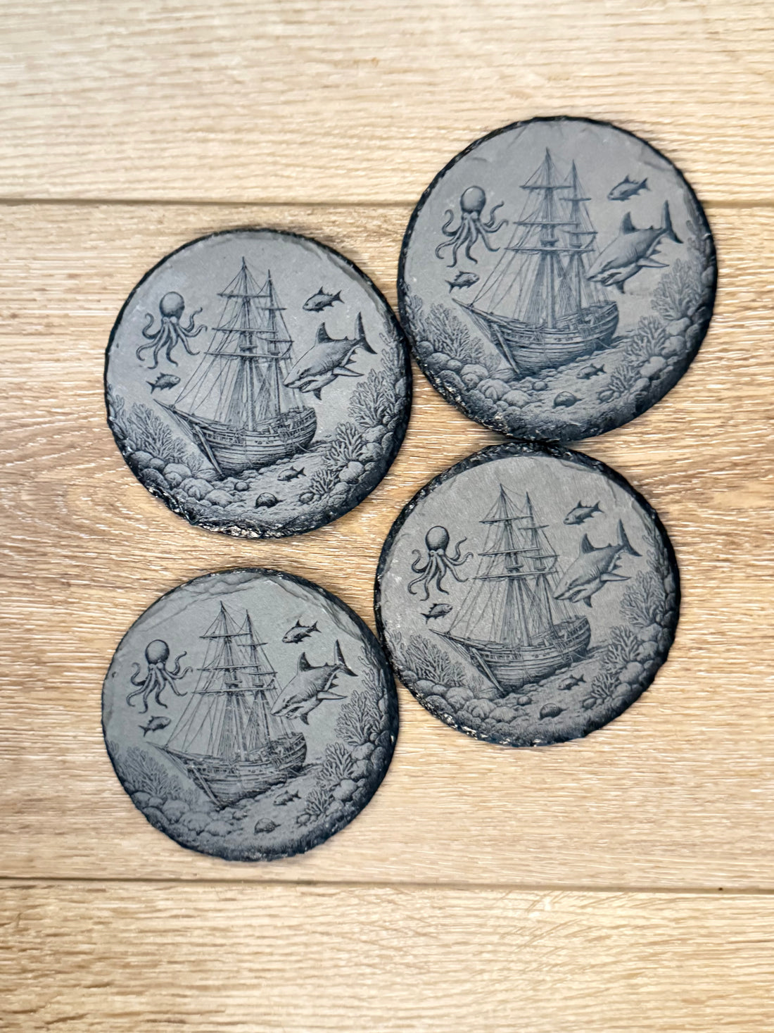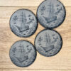DISCLAIMER: Coasters are made from slate, thus will have different grain and texture differences, slight natural flaws and grain patterns. We cannot guarantee a items will be identical and without natural flaws.