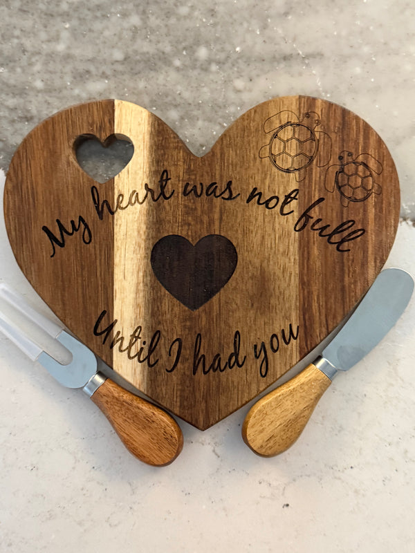 Would you like to have a special message engraved on this beautiful heart shaped board? Visit out Customize Products section.