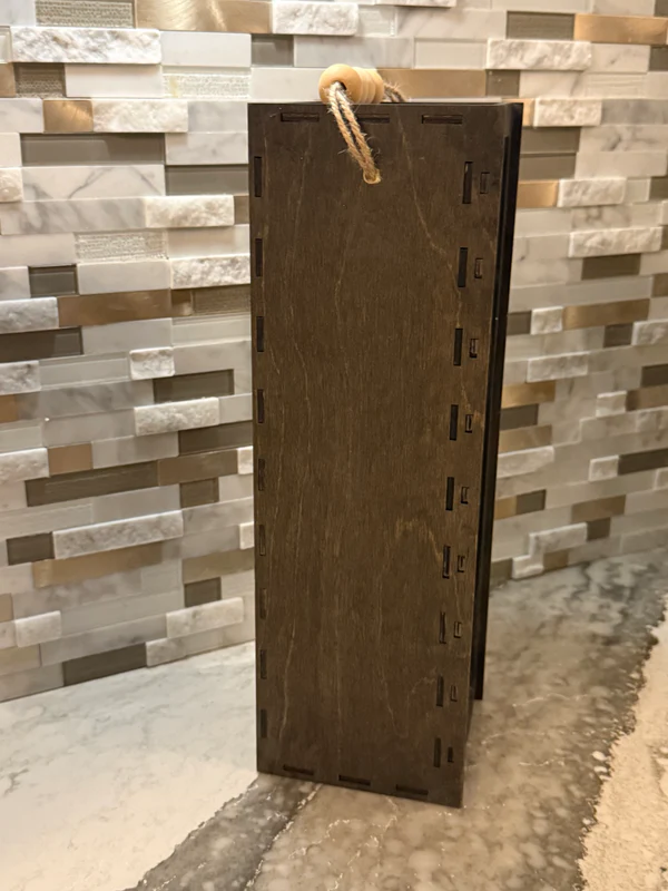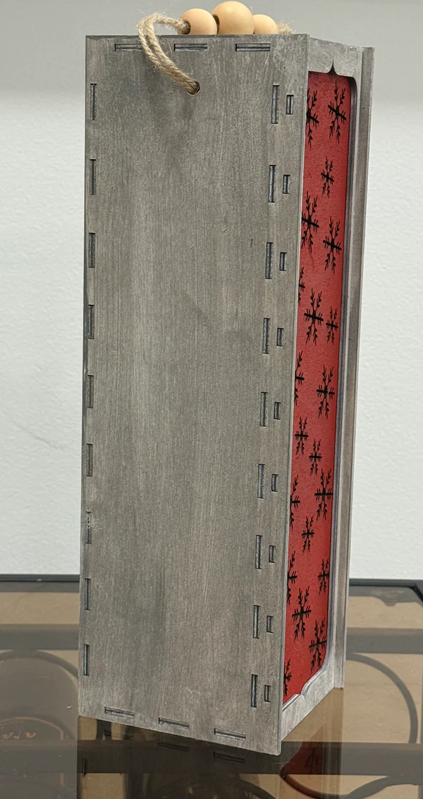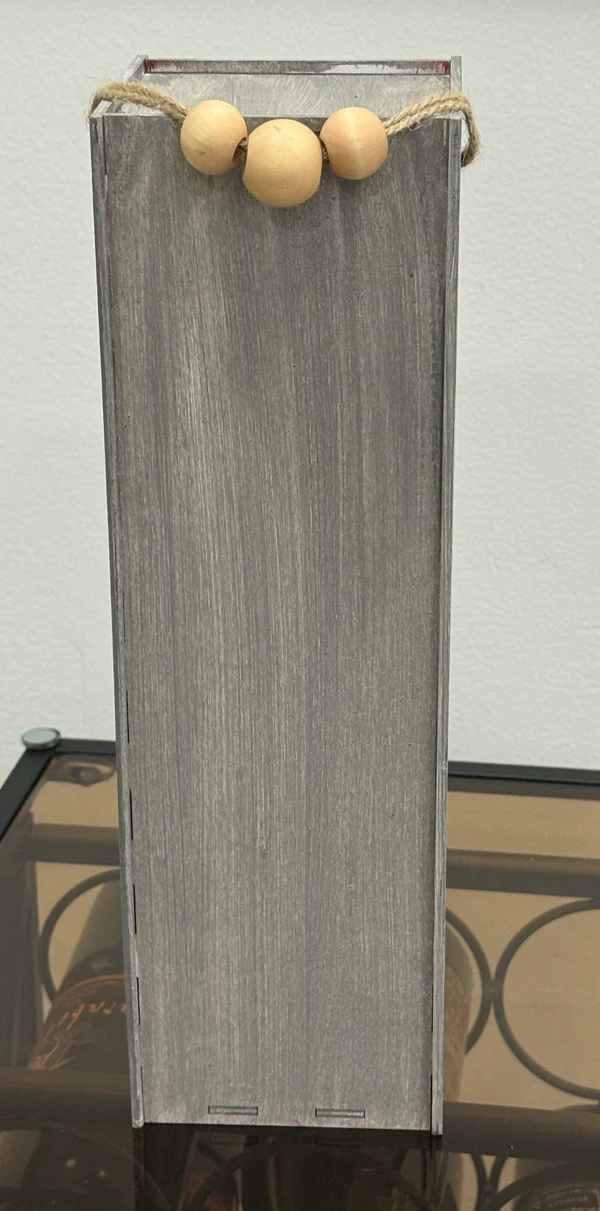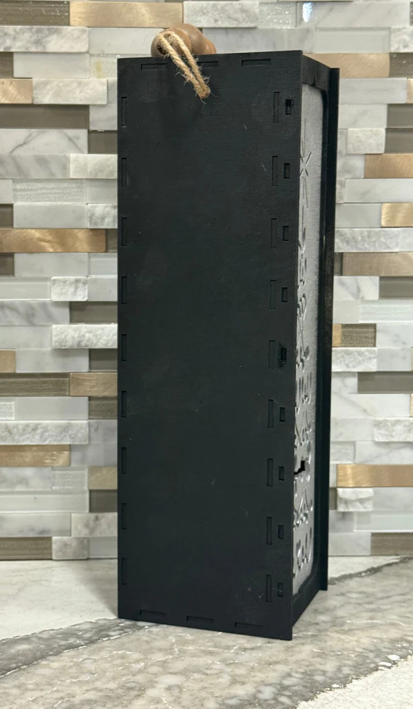 Give a gift that truly shines! This charming wooden box is your answer for wine lovers and treasure hunters alike. Gift with a bottle of wine inside or as a gift that can be used all year round! The front panel slides up so you can control the LED lights that create the perfect ambiance for any celebration, while the decorative beaded handle adds a touch of whimsy.